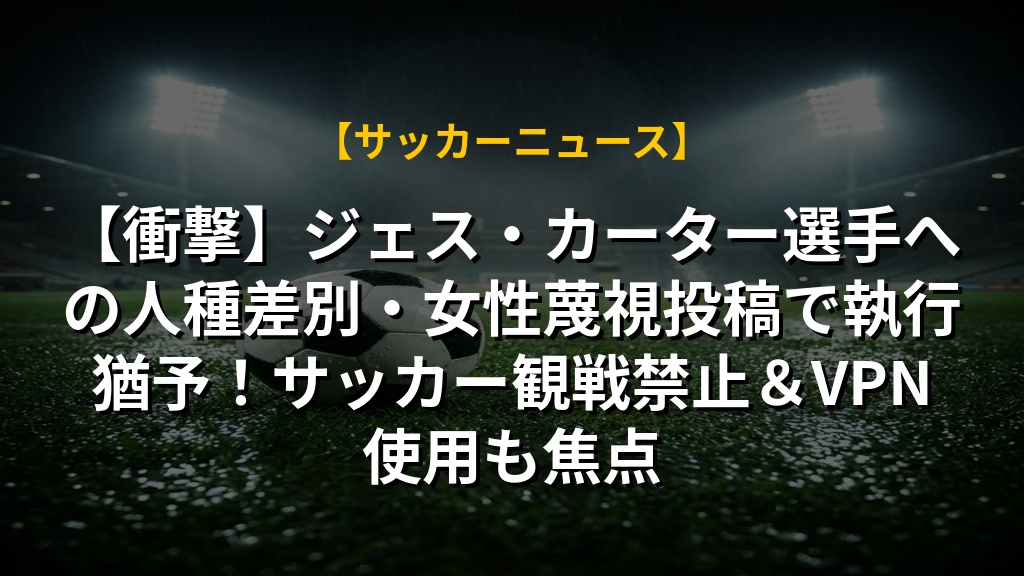 【衝撃】ジェス・カーター選手への人種差別・女性蔑視投稿で執行猶予!サッカー観戦禁止&VPN使用も焦点