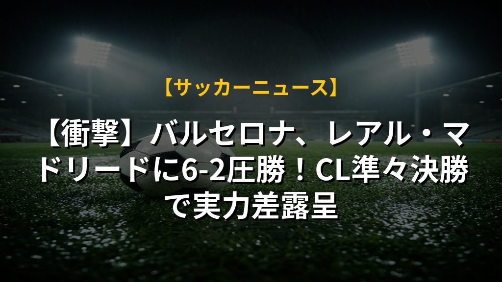バルセロナがチャンピオンズリーグ準々決勝第1戦でレアル・マドリードに6-2と大勝し、決勝トーナメント進出に大きく近づきました。試合ではバルセロナのパスと連携が光り、レアル・マドリードの苦戦が目立ちました。