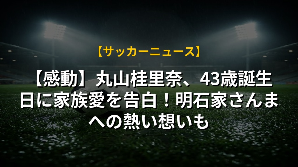 丸山桂里奈さんが43歳の誕生日を迎え、ご家族との温かいショットを公開されましたね。母親として親の愛情を改めて感じ、ご両親やご主人への感謝の気持ちが伝わってきて、とても感動しました。新たな挑戦への意欲やワールドカップへの期待も語られており、これからの活躍がますます楽しみです。明石家さんまさんとの共演を夢見る姿も素敵で、私たちに勇気を与えてくれます。素敵な一年になりますように応援しています。