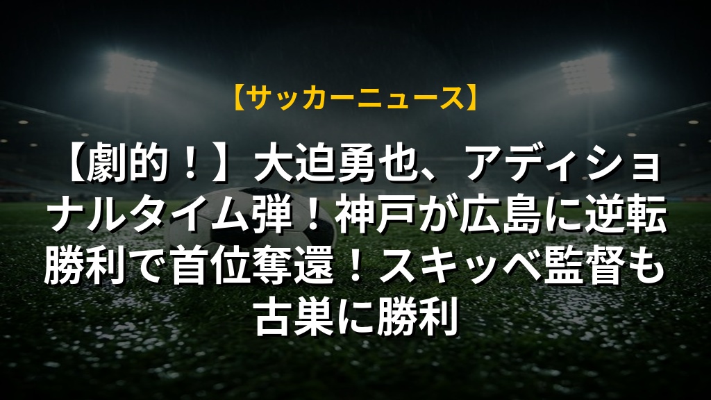 - ヴィッセル神戸がサンフレッチェ広島に劇的逆転勝利し、WESTグループ首位に返り咲いた。