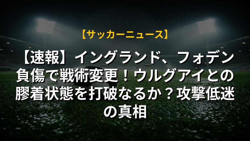 【速報】イングランド、フォデン負傷で戦術変更!ウルグアイとの膠着状態を打破なるか?攻撃低迷の真相