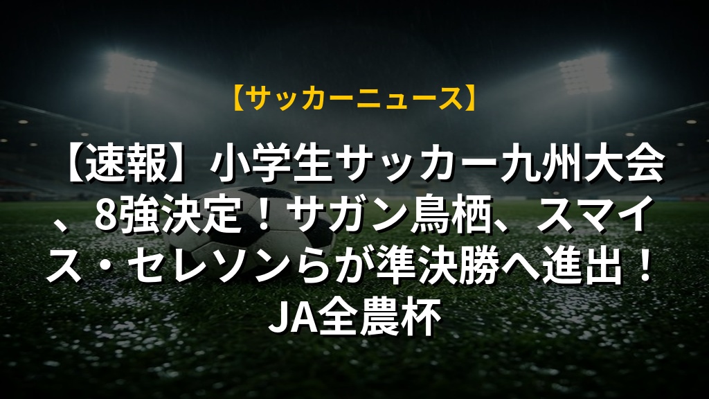 【速報】小学生サッカー九州大会、8強決定!サガン鳥栖、スマイス・セレソンらが準決勝へ進出!JA全農杯