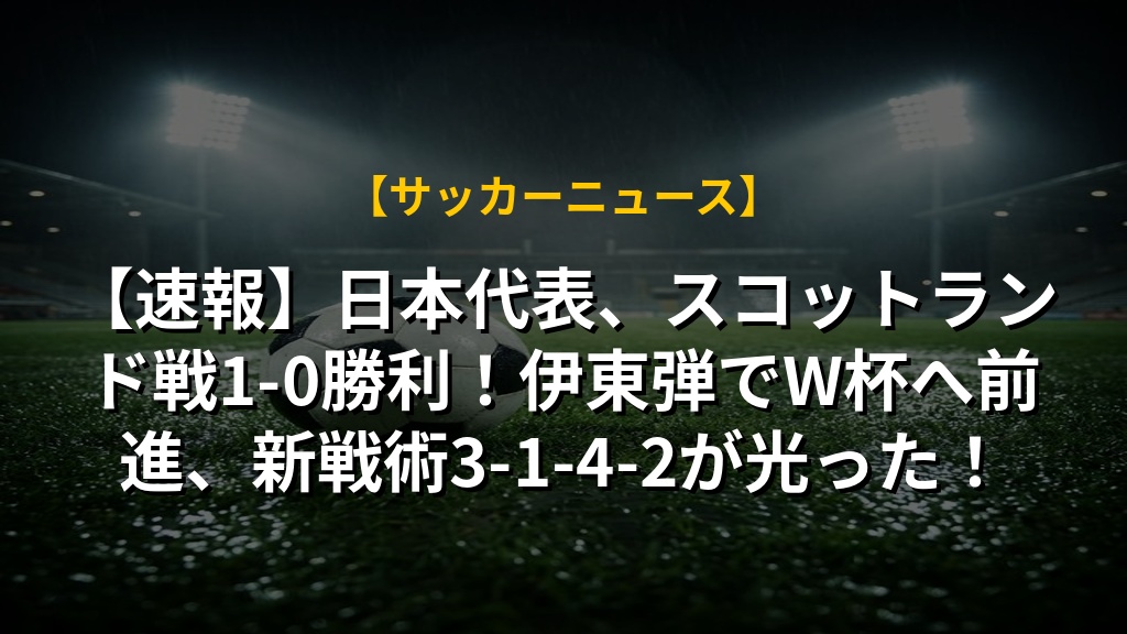 【速報】日本代表、スコットランド戦1-0勝利!伊東弾でW杯へ前進、新戦術3-1-4-2が光った!