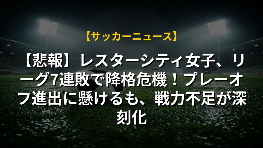【悲報】レスターシティ女子、リーグ7連敗で降格危機!プレーオフ進出に懸けるも、戦力不足が深刻化