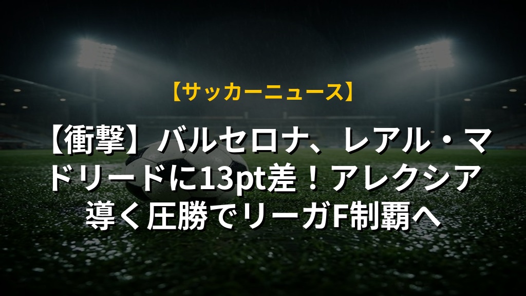 - バルセロナがリーガ・Fで圧倒的な強さを見せ、2位のレアル・マドリードに13ポイント差をつけ、優勝に大きく近づいた。