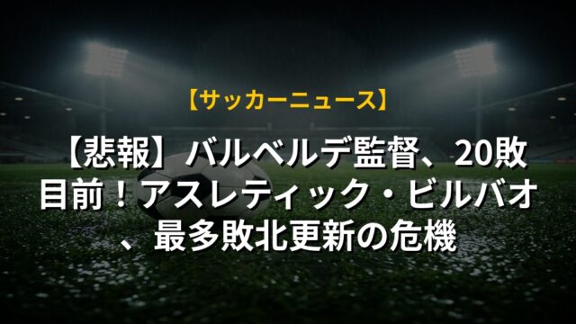 【悲報】バルベルデ監督、20敗目前!アスレティック・ビルバオ、最多敗北更新の危機