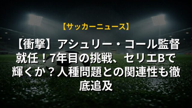 【衝撃】アシュリー・コール監督就任!7年目の挑戦、セリエBで輝くか?人種問題との関連性も徹底追及