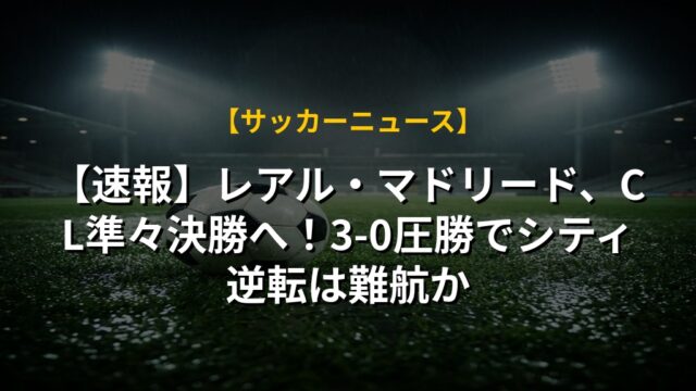 【速報】レアル・マドリード、CL準々決勝へ!3-0圧勝でシティ逆転は難航か