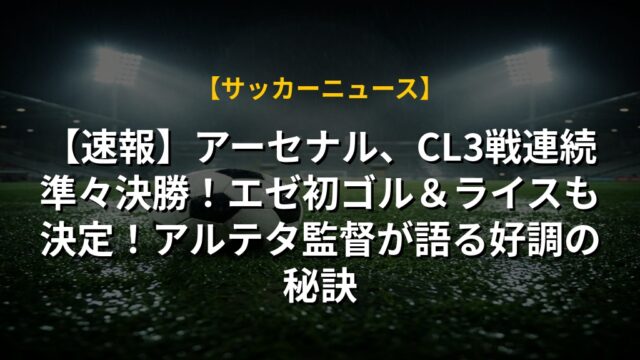 【速報】アーセナル、CL3戦連続準々決勝!エゼ初ゴル&ライスも決定!アルテタ監督が語る好調の秘訣