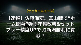 【速報】佐藤海宏、富山戦で“ホーム開幕”弾!守備改善&セットプレー精度UPでJ2新潟勝利に貢献?