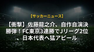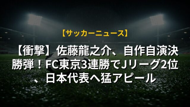 【衝撃】佐藤龍之介、自作自演決勝弾!FC東京3連勝でJリーグ2位、日本代表へ猛アピール