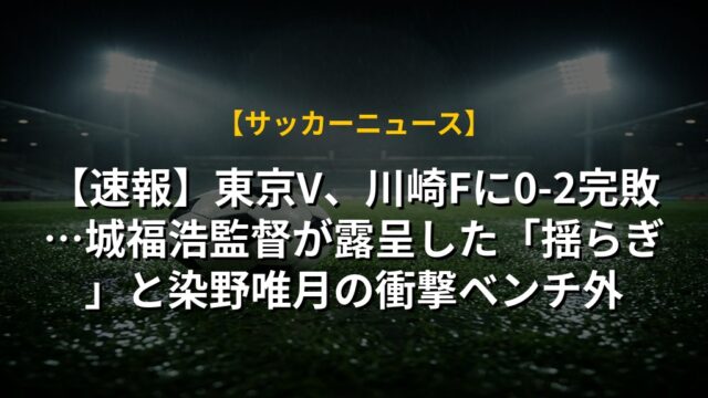 【速報】東京V、川崎Fに0-2完敗…城福浩監督が露呈した「揺らぎ」と染野唯月の衝撃ベンチ外