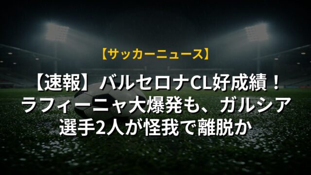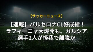【速報】バルセロナCL好成績!ラフィーニャ大爆発も、ガルシア選手2人が怪我で離脱か