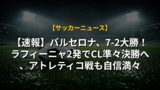 【速報】バルセロナ、7-2大勝!ラフィーニャ2発でCL準々決勝へ、アトレティコ戦も自信満々