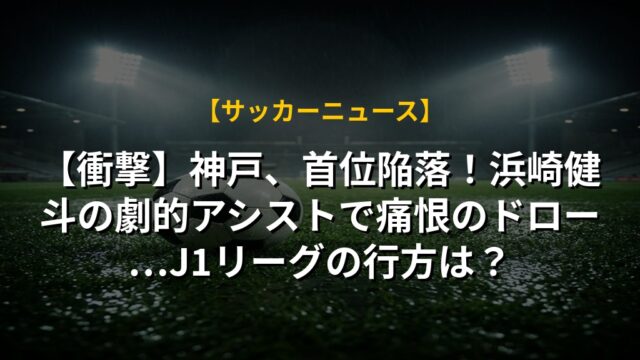 【衝撃】神戸、首位陥落!浜崎健斗の劇的アシストで痛恨のドロー…J1リーグの行方は?