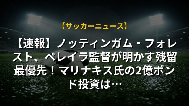 【速報】ノッティンガム・フォレスト、ペレイラ監督が明かす残留最優先!マリナキス氏の2億ポンド投資は…
