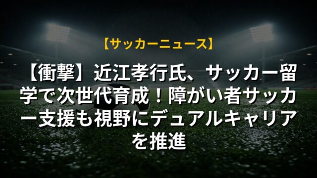 【衝撃】近江孝行氏、サッカー留学で次世代育成!障がい者サッカー支援も視野にデュアルキャリアを推進