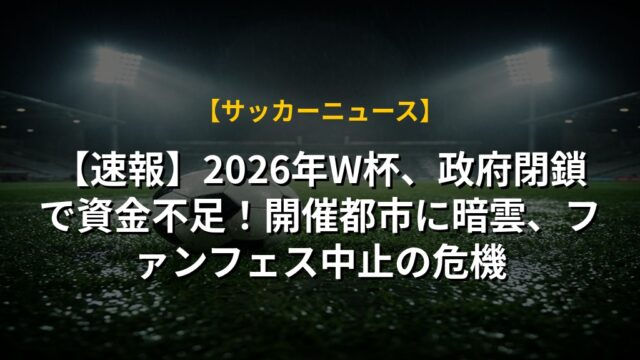 【速報】2026年W杯、政府閉鎖で資金不足!開催都市に暗雲、ファンフェス中止の危機