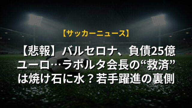 【悲報】バルセロナ、負債25億ユーロ…ラポルタ会長の“救済”は焼け石に水?若手躍進の裏側