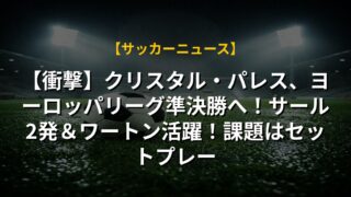 【衝撃】クリスタル・パレス、ヨーロッパリーグ準決勝へ!サール2発&ワートン活躍!課題はセットプレー