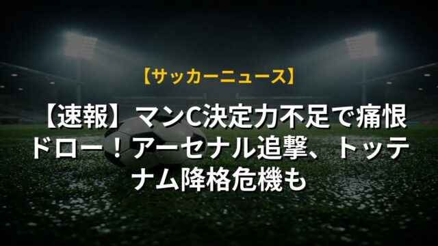 【速報】マンC決定力不足で痛恨ドロー!アーセナル追撃、トッテナム降格危機も
