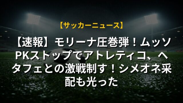 【速報】モリーナ圧巻弾!ムッソPKストップでアトレティコ、ヘタフェとの激戦制す!シメオネ采配も光った