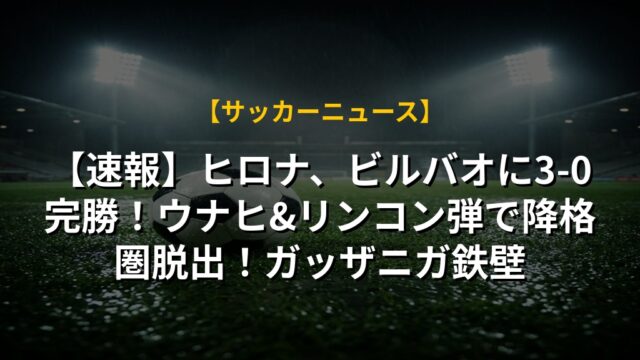 【速報】ヒロナ、ビルバオに3-0完勝!ウナヒ&リンコン弾で降格圏脱出!ガッザニガ鉄壁