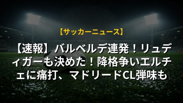 【速報】バルベルデ連発!リュディガーも決めた!降格争いエルチェに痛打、マドリードCL弾味も