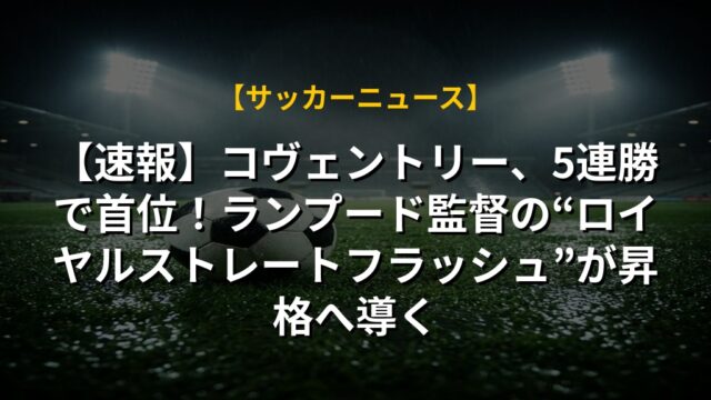 【速報】コヴェントリー、5連勝で首位!ランプード監督の“ロイヤルストレートフラッシュ”が昇格へ導く