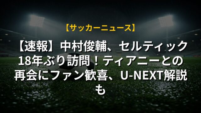 【速報】中村俊輔、セルティック18年ぶり訪問!ティアニーとの再会にファン歓喜、U-NEXT解説も