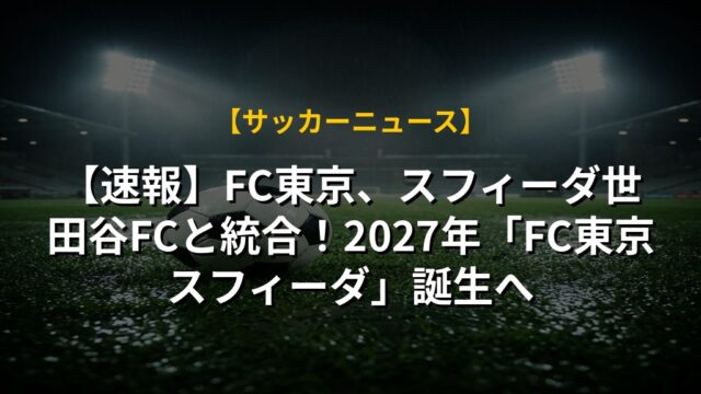 【速報】FC東京、スフィーダ世田谷FCと統合!2027年「FC東京スフィーダ」誕生へ
