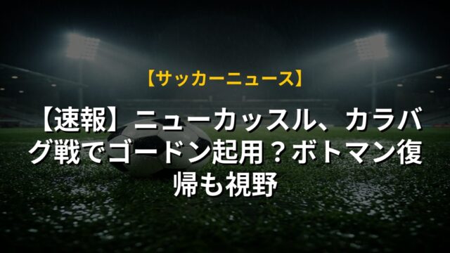 【速報】ニューカッスル、カラバグ戦でゴードン起用?ボトマン復帰も視野
