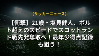 【衝撃】21歳・塩貝健人、ボルト超えのスピードでスコットランド戦先発奪取へ!最年少得点記録も狙う!