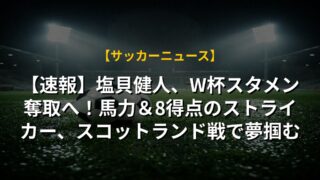【速報】塩貝健人、W杯スタメン奪取へ!馬力&8得点のストライカー、スコットランド戦で夢掴む