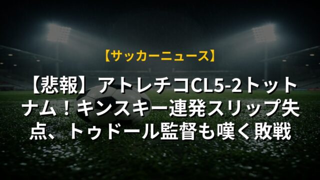 【悲報】アトレチコCL5-2トットナム!キンスキー連発スリップ失点、トゥドール監督も嘆く敗戦