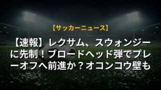 【速報】レクサム、スウォンジーに先制!ブロードヘッド弾でプレーオフへ前進か?オコンコウ壁も