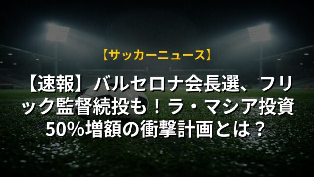 【速報】バルセロナ会長選、フリック監督続投も!ラ・マシア投資50%増額の衝撃計画とは?