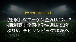 【衝撃】ツエーゲン金沢U-12、PK戦制覇!全国小学生選抜で2年ぶりV、チビリンピック2026へ