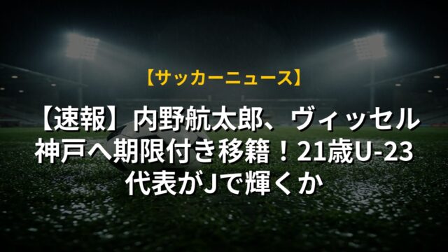 【速報】内野航太郎、ヴィッセル神戸へ期限付き移籍!21歳U-23代表がJで輝くか
