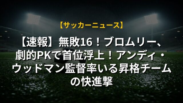 【速報】無敗16!ブロムリー、劇的PKで首位浮上!アンディ・ウッドマン監督率いる昇格チームの快進撃