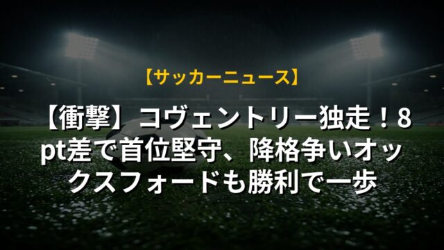 【衝撃】コヴェントリー独走!8pt差で首位堅守、降格争いオックスフォードも勝利で一歩