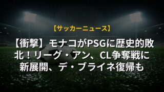 【衝撃】モナコがPSGに歴史的敗北!リーグ・アン、CL争奪戦に新展開、デ・ブライネ復帰も