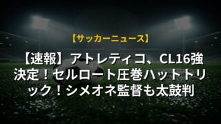【速報】アトレティコ、CL16強決定!セルロート圧巻ハットトリック!シメオネ監督も太鼓判