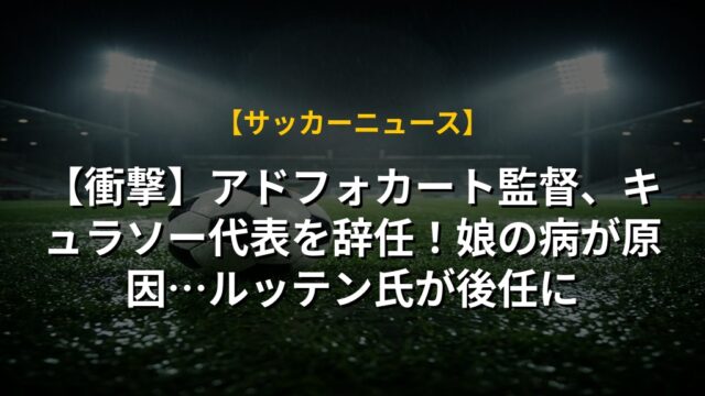 【衝撃】アドフォカート監督、キュラソー代表を辞任!娘の病が原因…ルッテン氏が後任に