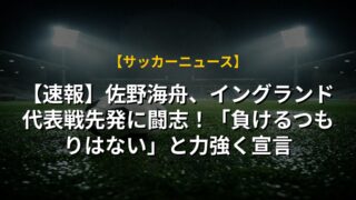 【速報】佐野海舟、イングランド代表戦先発に闘志!「負けるつもりはない」と力強く宣言