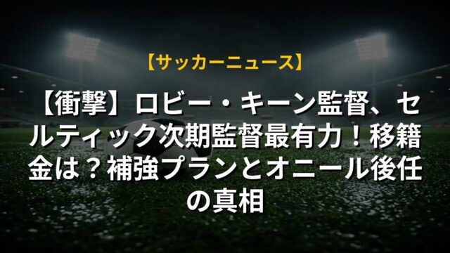 【衝撃】ロビー・キーン監督、セルティック次期監督最有力!移籍金は?補強プランとオニール後任の真相