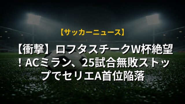 【衝撃】ロフタスチークW杯絶望!ACミラン、25試合無敗ストップでセリエA首位陥落