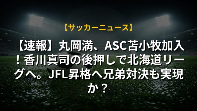 【速報】丸岡満、ASC苫小牧加入!香川真司の後押しで北海道リーグへ。JFL昇格へ兄弟対決も実現か?