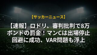 【速報】ロドリ、審判批判で8万ポンドの罰金!マンCは出場停止回避に成功、VAR問題も浮上