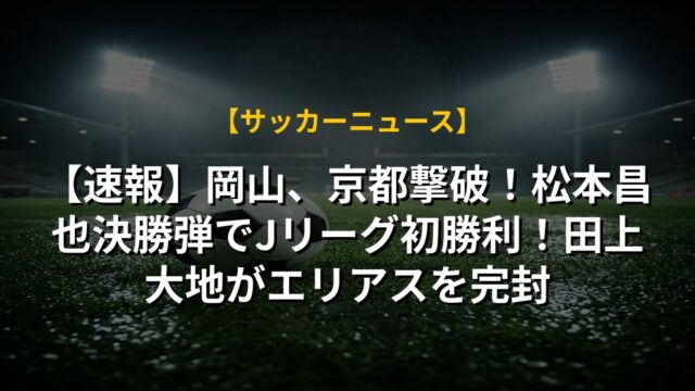 【速報】岡山、京都撃破!松本昌也決勝弾でJリーグ初勝利!田上大地がエリアスを完封